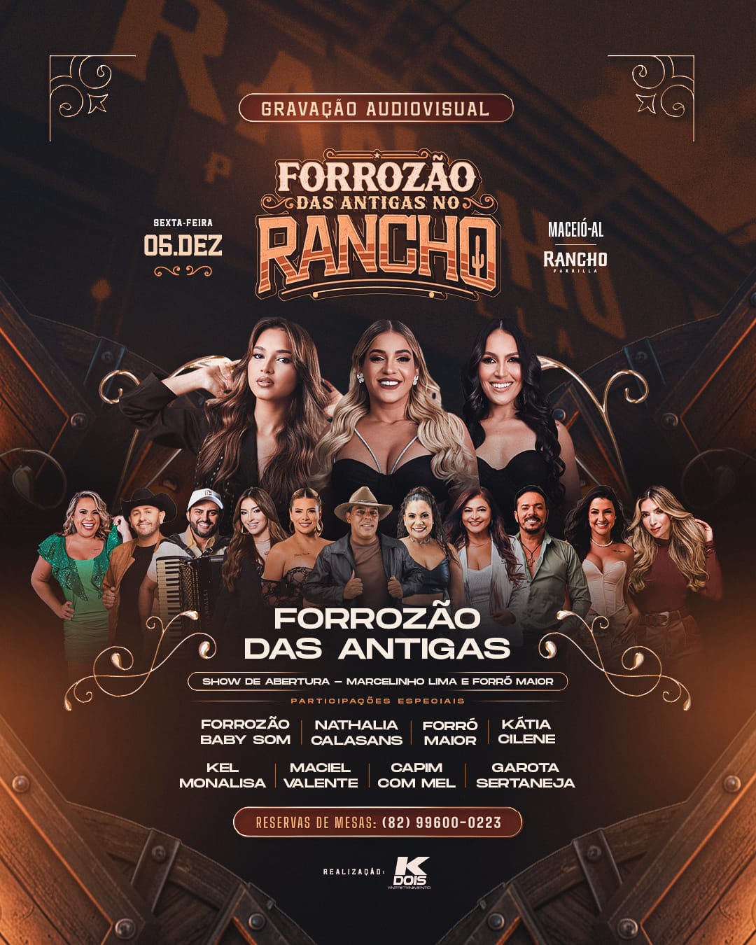 A Banda Forrozão das Antigas comemora 18 anos de carreira com a gravação do seu mais novo projeto audiovisual: o “Forrozão das Antigas no Rancho”. O show acontecerá no próximo dia 5 de dezembro, em Maceió. O projeto trará releituras de grandes clássicos do forró que marcaram gerações.