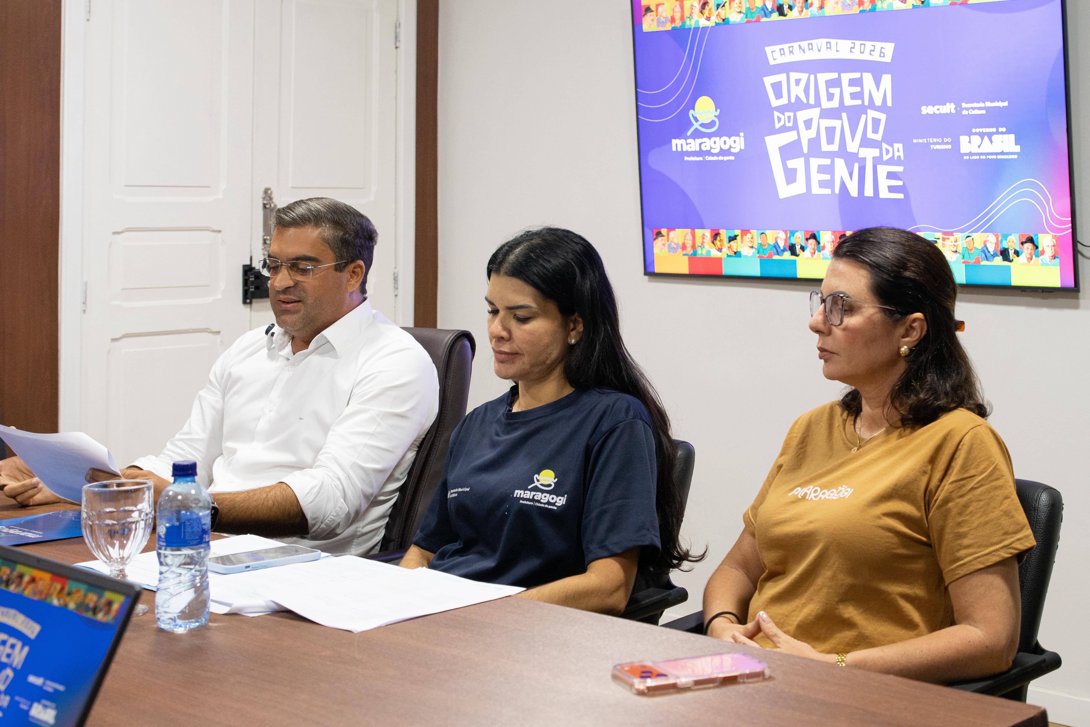 A Prefeitura de Maragogi, por meio da Secretaria Municipal de Cultura, Esporte e Eventos, apresentou nesta terça-feira (3), no Palácio das Palmeiras, o projeto do Carnaval 2026, que traz como tema “Carnaval – A Origem do Povo da Gente”. A proposta reafirma o compromisso da gestão municipal com o resgate das tradições populares, a valorização da identidade cultural e o reconhecimento de personalidades que ajudaram a construir a história do município.
