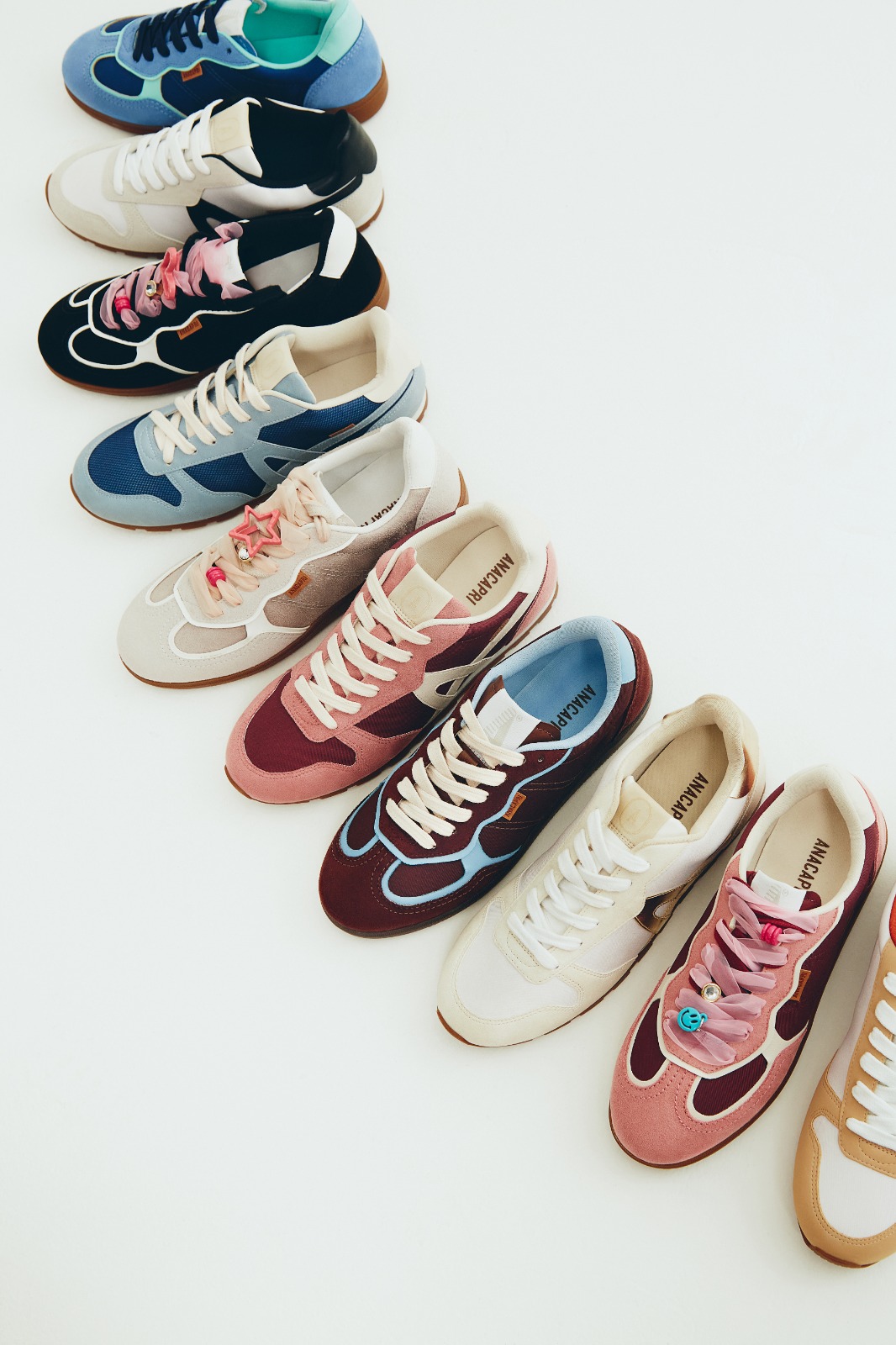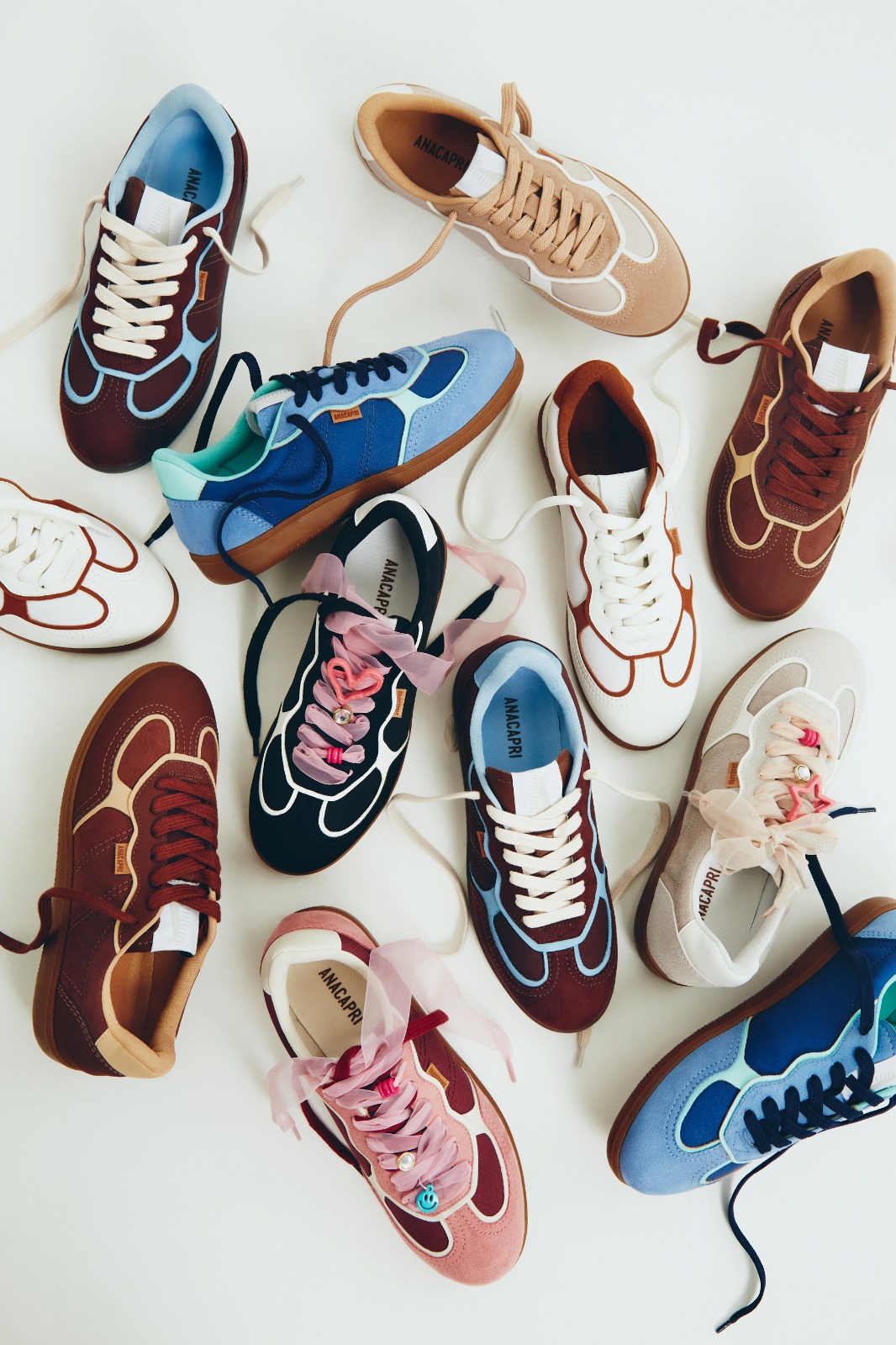 O Carnaval 2026 reforça a personalização como uma das principais tendências da moda, especialmente na categoria de sneakers. Atenta a esse movimento, a Anacapri relança dois de seus modelos mais vendidos — A25 e Lola —com novas cores e propostas de customização que permitem diferentes combinações de atacadores e acessórios. Fotos Divulgação