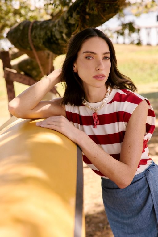 *Peças listradas* - Clássicas e sempre atuais, as listras retornam com frescor e novas leituras, reforçando um visual leve e sofisticado. Seja em versões finas ou mais marcadas, elas adicionam informação de moda sem pesar na produção, além de facilitarem combinações com peças lisas e tons neutros. O padrão também ajuda a criar looks equilibrados e com apelo atemporal.