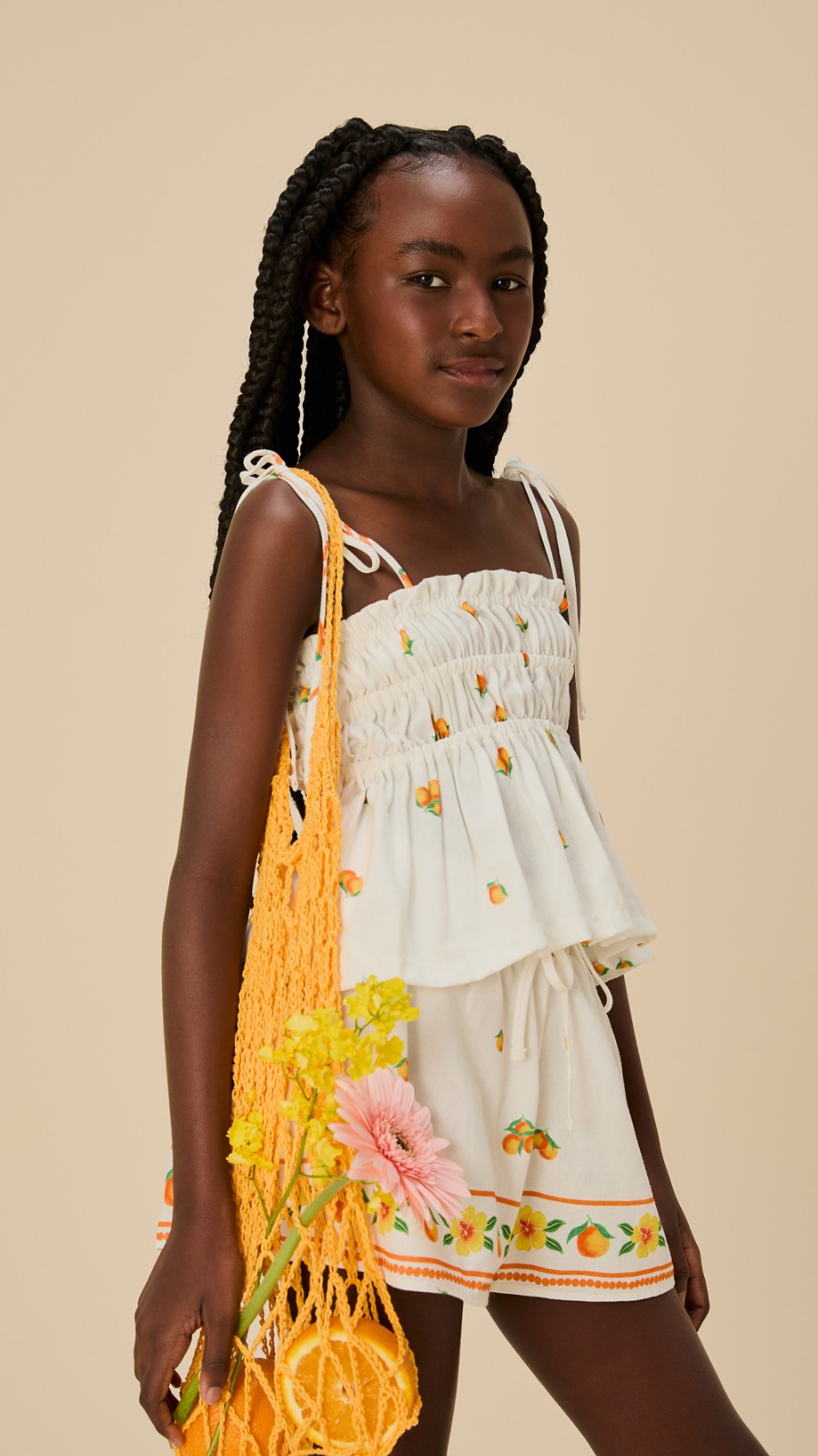 Mais do que uma nova linha, é um novo olhar para essa fase de descobertas. A proposta é criar um elo entre a infância e a vida adulta com peças que respeitam o tempo de cada menina e fortalecem a autoestima, autenticidade e liberdade de ser. “É um grande desafio criar para esse momento tão efêmero que é a transição da infância para a adolescência, segundo as pesquisas, é uma geração que está cronicamente online. E nós sabemos o dano que isso pode causar pra autoimagem. As amizades são fundamentais pra construção da autoestima, amigas se apoiam e encorajam hábitos saudáveis de autocuidado. Criamos pensando nesse coletivo de amigas, cada uma com sua personalidade, se apoiando. Desejamos que elas se sintam lindas mas sempre confortáveis nas nossas modelagens e que as cores e estampas nunca percam a ludicidade que é uma coisa séria pra gente.” Marta Rodrigues, Diretora Criativa de Fábula e Farm Futura.