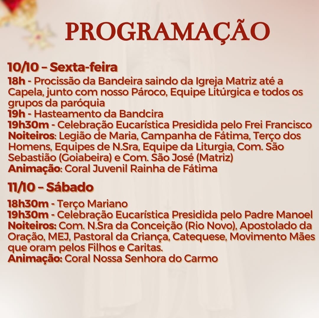 A Capela de Nossa Senhora de Fátima, no ABC, pertencente à Paróquia de São José Operário, de Fernão Velho, inicia nesta sexta-feira (10) a festividade da padroeira.