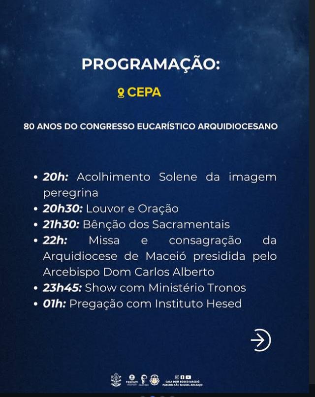 🔗 Informações e inscrições: redes sociais da Arquidiocese, Fundação João Paulo II e Paróquia São Miguel Arcanjo