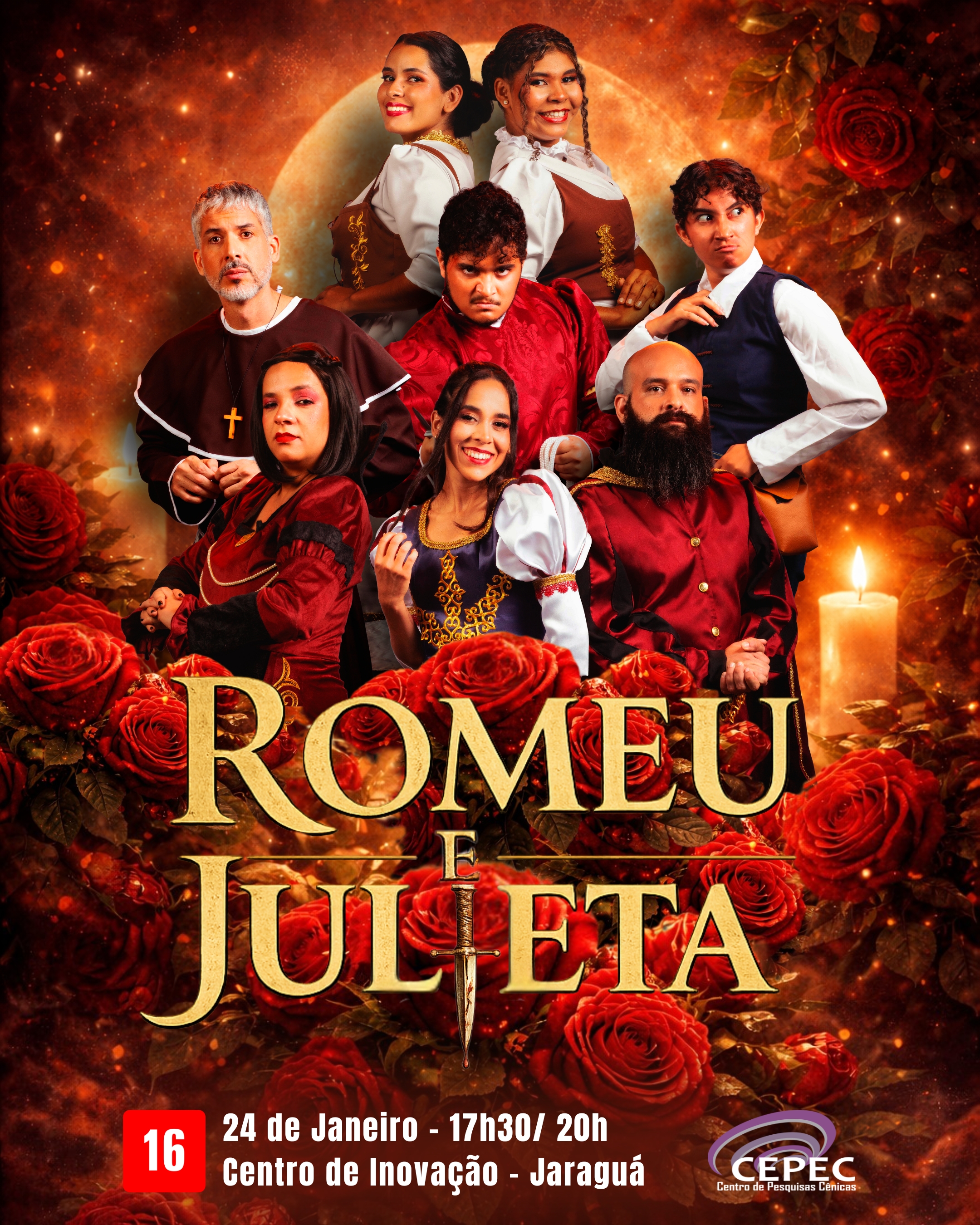 Um dos maiores clássicos da dramaturgia mundial chega aos palcos de Maceió em uma montagem intensa, sensível e profundamente contemporânea. No dia 24 de janeiro de 2026, o Centro de Pesquisas Cênicas (CEPEC) apresenta o espetáculo “Romeu e Julieta”, com sessões às 17h30 e 20h, no Centro de Inovação (Jaraguá), prometendo emocionar o público ao revisitar a mais célebre história de amor de William Shakespeare.