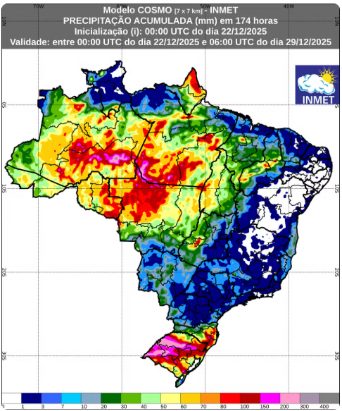 Já no Rio Grande do Sul, o risco se concentra principalmente na metade norte do estado, enquanto áreas do sul devem alternar períodos de tempo firme e chuva.