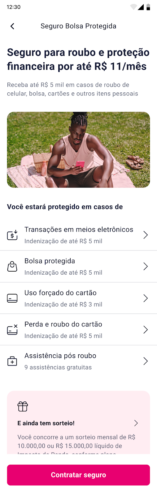 2. Na seção “Seguros e Assistências”, clique em "Seguro Bolsa Protegida".