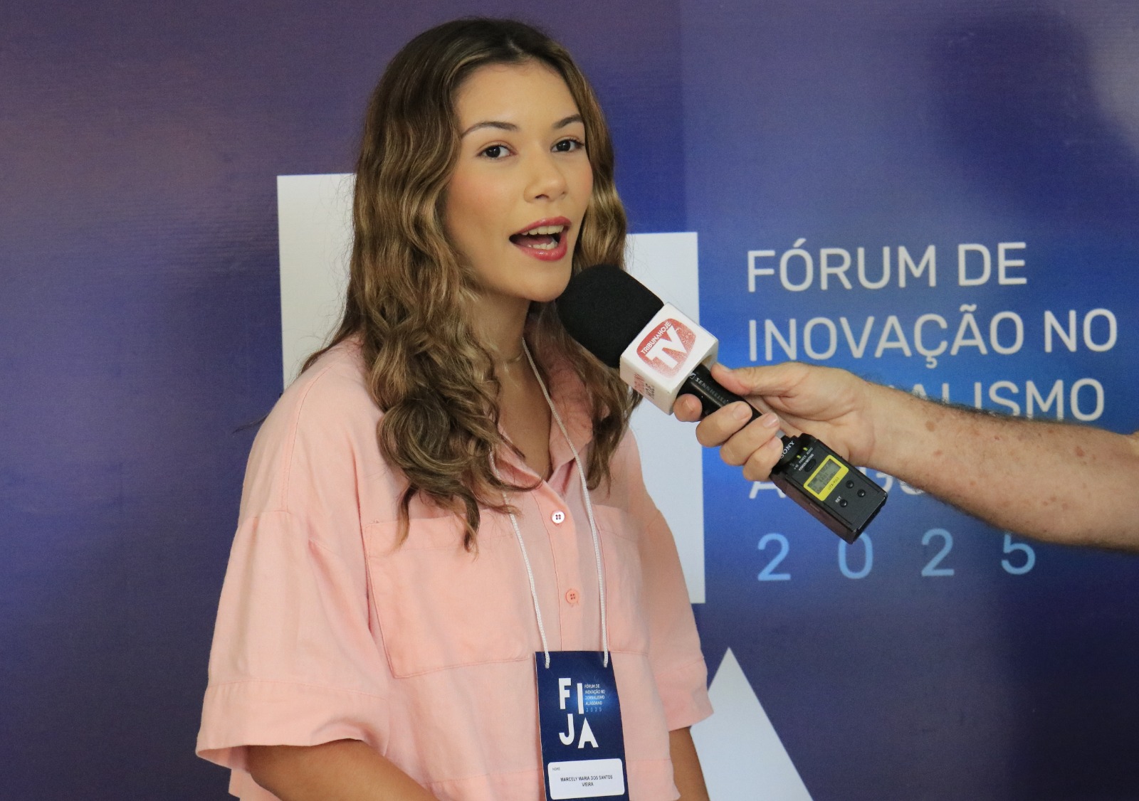Marcele Vieira, estudante de Relações Públicas, também compartilhou sua experiência no Fija 2025, destacando a importância de aprender sobre comunicação e o uso da IA nas redes sociais. “A experiência positiva, basicamente, é que eu posso aprender mais sobre a comunicação. O evento não focado apenas em jornalismo. Mas qualquer pessoa da comunicação pode vir aprender mais sobre isso. A gente aprendeu, por exemplo, sobre o uso da IA dentro das redes sociais e como trazer a notícia a partir da IA. Isso é bem interessante. Eu acho que a gente tem que ver o lado positivo, que a gente pode agregar [a IA] na nossa profissão. Porque a gente pode produzir conteúdos com ela. Ela pode nos ajudar, não é? Não só trazer coisas ruins”, avalia.