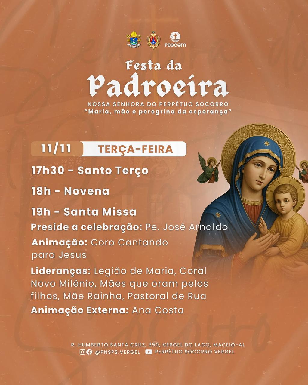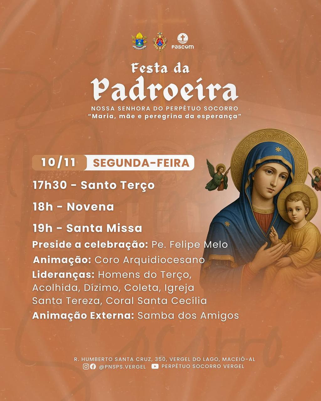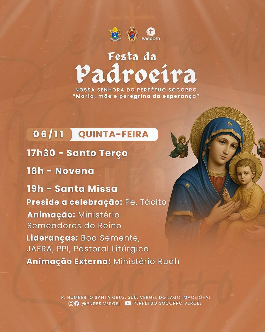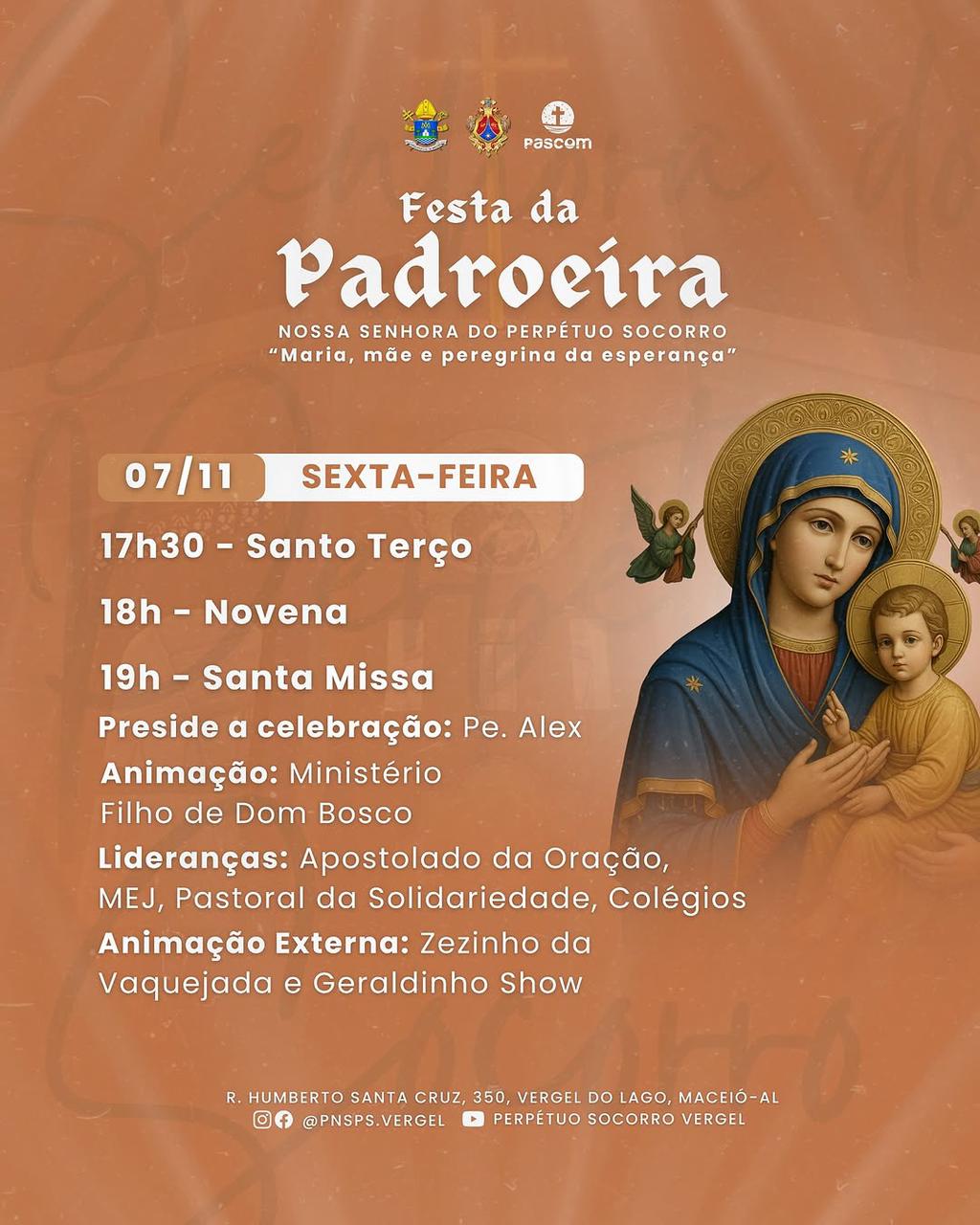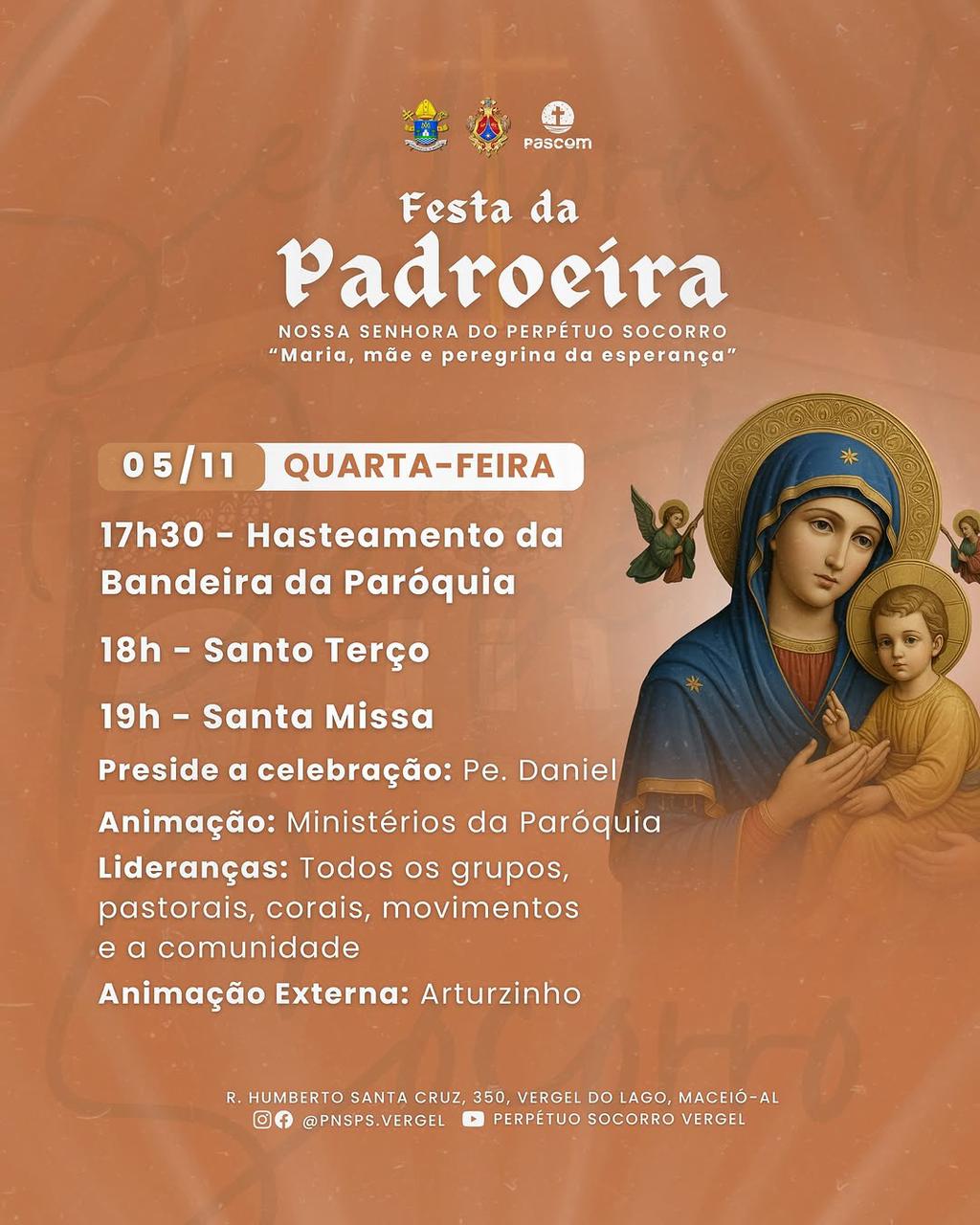 A comunidade católica do Vergel do Lago, em Maceió, se prepara para viver um dos momentos mais importantes de sua tradição religiosa. Entre os dias 5 e 15 de novembro, acontece a Festa da Padroeira do Vergel, Nossa Senhora do Perpétuo Socorro, promovida pela paróquia homônima, localizada na Rua Humberto Santa Cruz, na parte baixa da capital alagoana.
