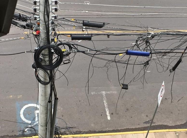 Grande parte desses materiais pertence a antigas operadoras de telefonia e internet que já não atuam mais na cidade e ficam esquecidos nos postes.