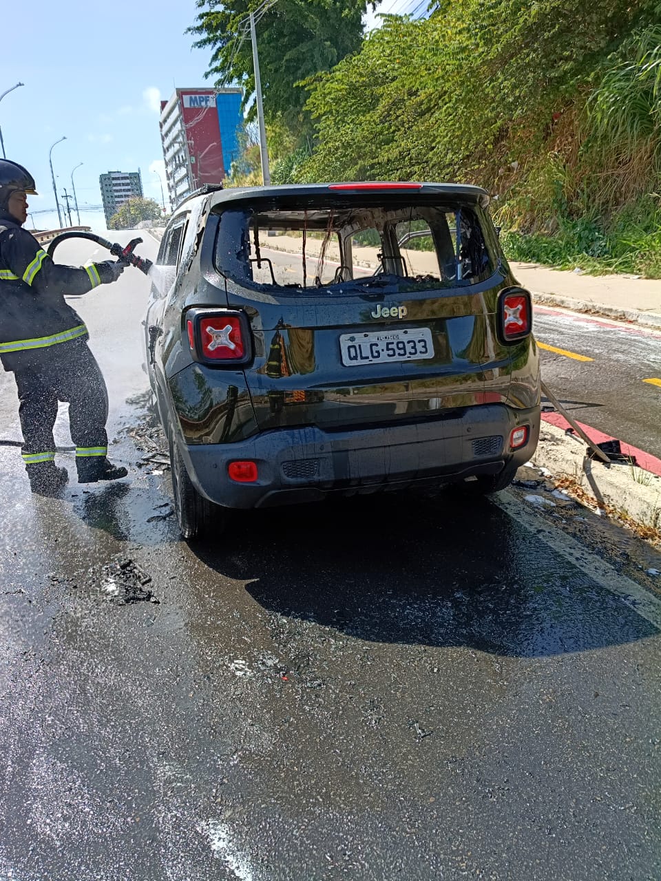 O Corpo de Bombeiros Militar de Alagoas (CBM/AL) foi acionado e enviou uma viatura para controlar as chamas. Segundo a corporação, a proprietária do Jeep informou que o fogo teria começado após acender a luz do botão que desliga o carro automaticamente.