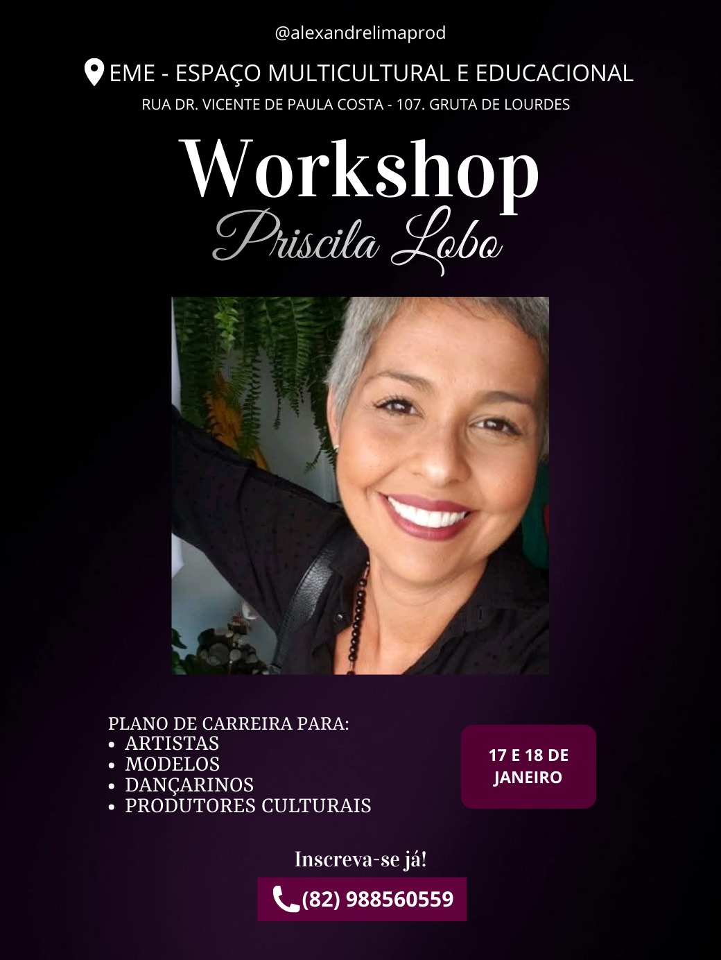 O workshop reunirá artistas, produtores, modelos, bailarinos, cantores, músicos, atores, estudantes e demais interessados em atuar profissionalmente no setor cultural. A iniciativa é uma realização da Alexandre Lima Produções Artísticas e amplia o acesso a formação especializada no audiovisual brasileiro no Nordeste.