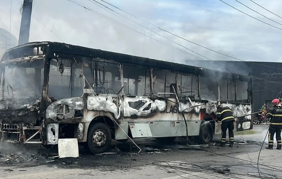 Vídeos que circulam nas redes sociais registraram o momento em que o fogo toma conta do veículo. As chamas chegaram a atingir um poste e a fiação elétrica próxima ao local onde o ônibus estava estacionado.