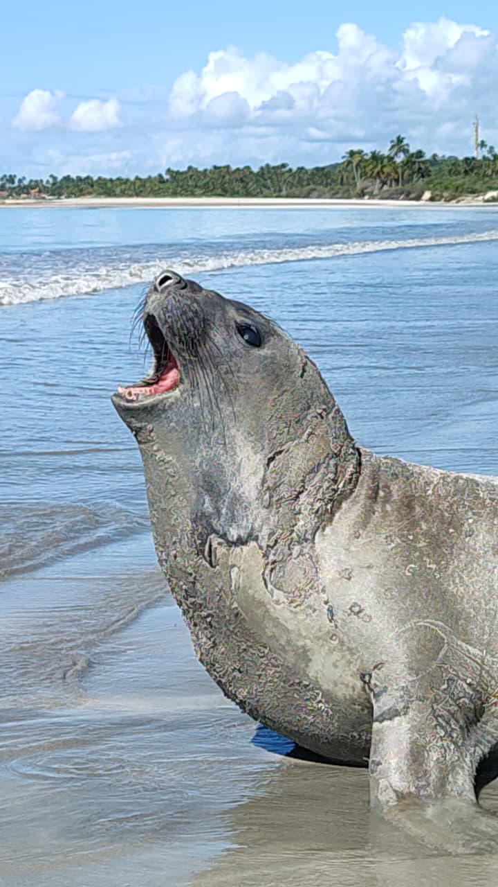 Um elefante-marinho apareceu na orla de Maceió na manhã desta quarta-feira (18), após passar vários dias se deslocando pelo litoral de Alagoas. O animal vinha sendo observado desde a semana passada, quando surgiu em uma praia do Litoral Norte do estado.
