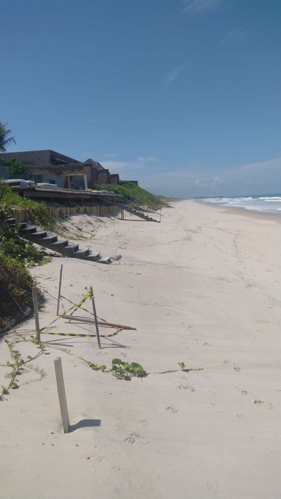 Segundo o engenheiro, a obra, que se encontra ainda em monitoramento para avaliação do pós-obra, vai aumentando o acúmulo de sedimentos, formando a berma no local. "Isso indica que onde antes havia erosão agora está ocorrendo o acúmulo de sedimentos no estirâncio, com emersão da praia, a vegetação de restinga ressurgiu, a berma foi formada, e a desova das tartarugas marinhas indica que a obra de proteção costeira Sandbag é sustentável. Praia em recuperação", afirma Marco Lyra.