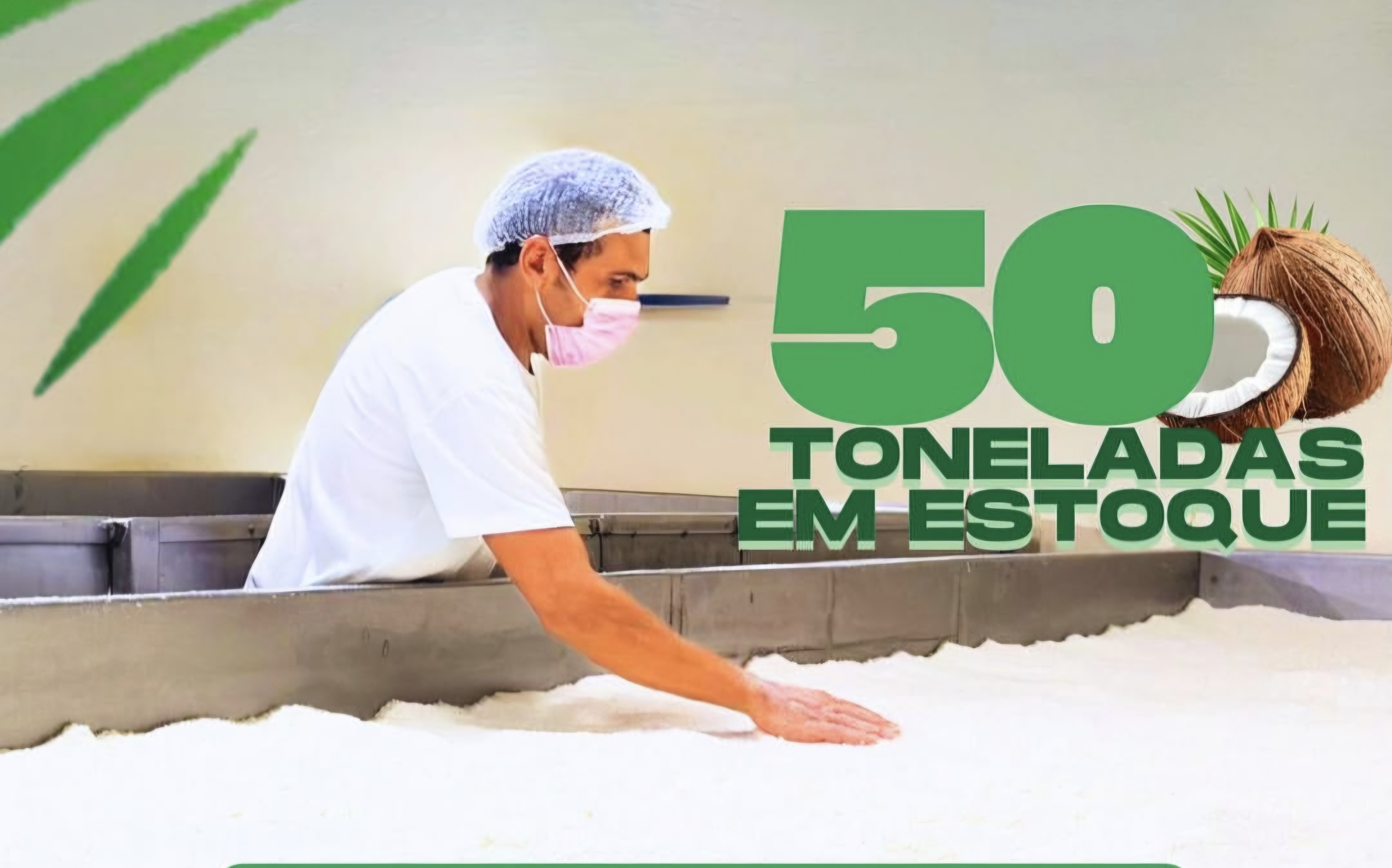 Assim a COOPAIBA mantém 50 toneladas de derivados do coco em estoque e segue com produção acelerada em Piaçabuçu, fortalecendo a agricultura familiar e movimentando a economia local, ondee mais de 1.300 cooperados transforman organização em resultado, produção em desenvolvimento e união em crescimento.