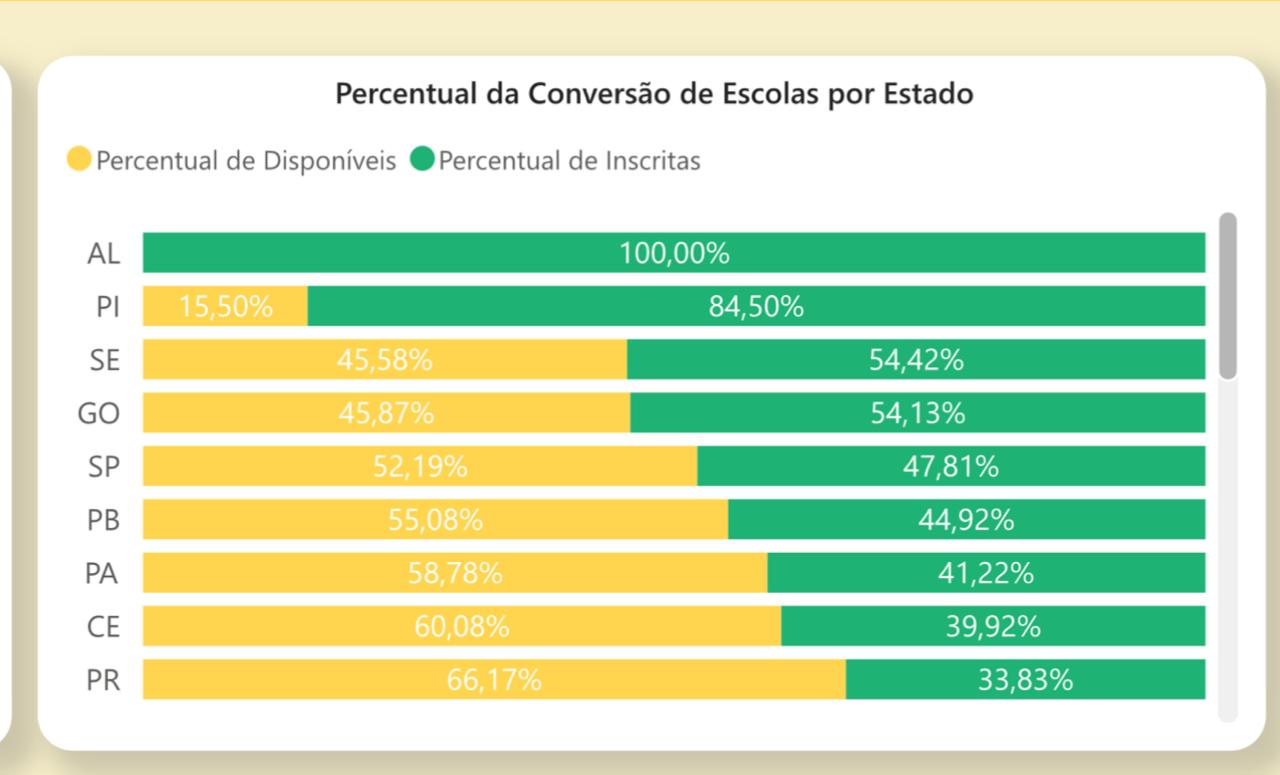 No cenário nacional, a olimpíada também tem números expressivos. Em 2025, foram mais de 13 mil escolas inscritas, um crescimento significativo em relação às 6.560 instituições participantes em 2024. A competição chegou a 60% dos municípios brasileiros, frente a 43% no ano anterior.