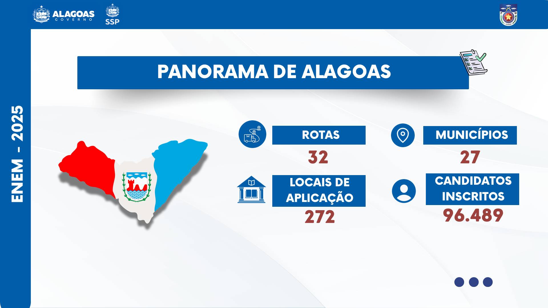 O comandante-geral da PM, coronel Paulo Amorim, salientou que o Enem 2025 é, mais uma vez, um momento decisivo para milhares de brasileiros que aspiram ingressar no ensino superior. “E a Polícia Militar de Alagoas tem a responsabilidade de garantir que esse momento ocorra com ordem, respeito e segurança. Em Alagoas, registramos 96.488 inscrições confirmadas, um contingente significativo que reforça a necessidade de um planejamento operacional preciso e humano”, afirmou.