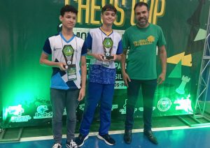 Davi Lucas Ferreira e Thalles Emanuel, ambos do 8º ano A, conquistaram, a 1ª e a 3ª colocações, consecutivamente, na categoria sub-14 da modalidade, o que os credenciou à disputa da competição nacional no próximo ano.