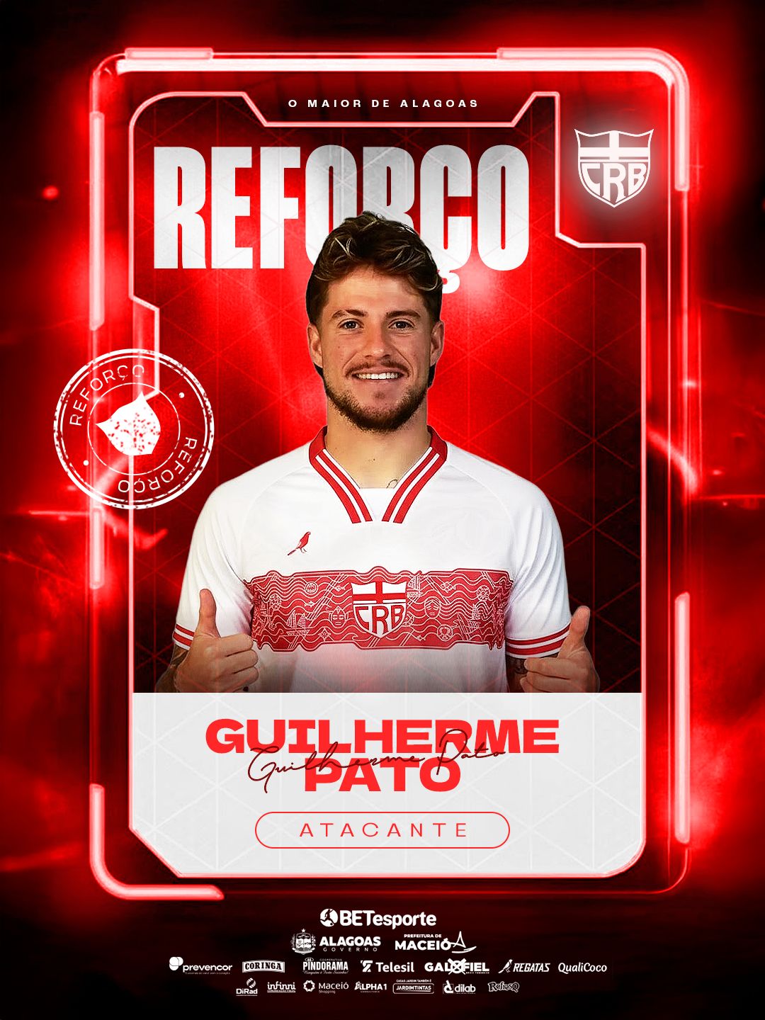 O CRB oficializou nesta quinta-feira (18), a contratação de três reforços para a temporada 2026: o atacante João Neto, que retorna ao clube, o volante Luizão, com vasta experiência no futebol europeu, e o também atacante Guilherme Pato, conhecido de Eduardo Barroca.