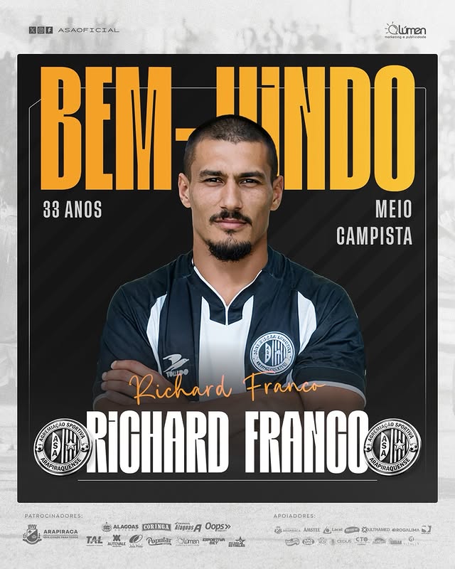O ASA confirmou nesta sexta-feira (3) duas contratações para as disputas do Campeonato Brasileiro da Série D e Copa do Nordeste. Chegam ao clube o volante paraguaio Richard Franco, de 33 anos, e o lateral-esquerdo Wesley Costa, de 22 anos.