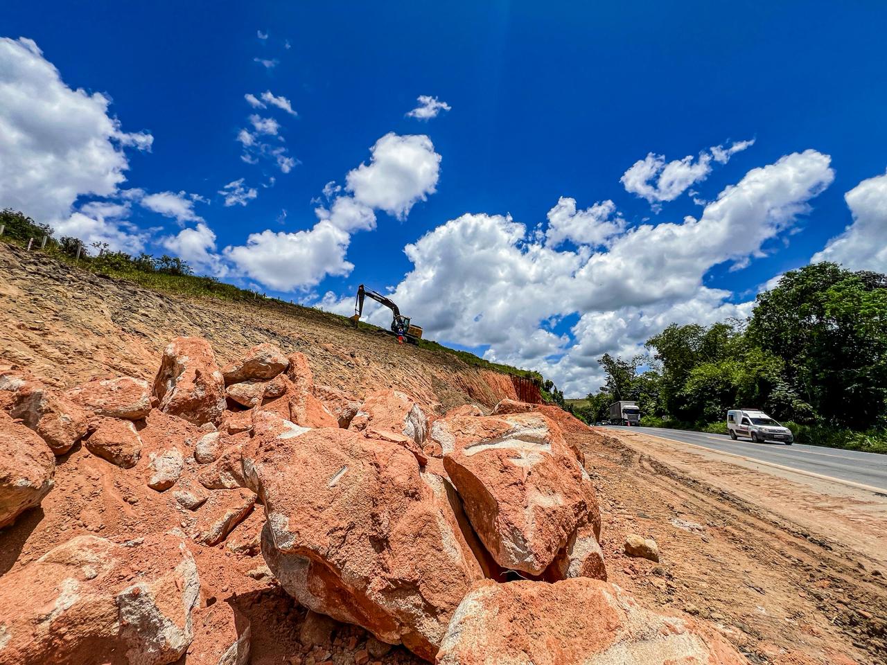 Após acidentes geológicos que inviabilizaram a aplicação do pavimento, os serviços de terraplenagem e conformação do subleito da pista de rolamento nos lotes 4 e 5 da duplicação, em São Miguel dos Campos, também foram retomados.