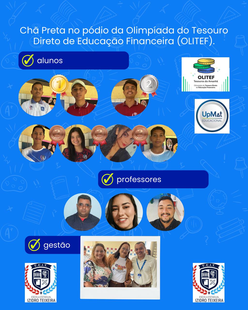 A Escola Estadual Izidro Teixeira, de Chã Preta, na Zona da Mata de Alagoas, brilhou na Olimpíada de Educação Financeira (OLITEF) 2025, promovida pelo Tesouro Direto em parceria com o Ministério da Educação (MEC) e o Banco Central (BC). Entre mais de 13 mil escolas participantes de todo o país, os alunos champretenses conquistaram sete medalhas, sendo dois ouros, uma prata e quatro bronzes, além de várias menções honrosas.