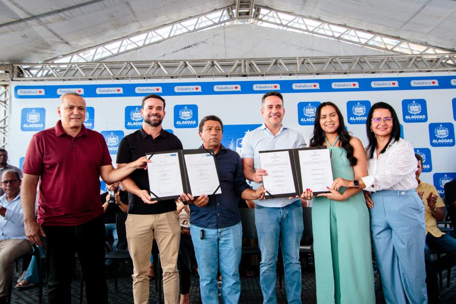 A pavimentação asfáltica de diversas ruas da zona urbana de Água Branca será executada por intermédio do Programa Pró-Estrada. Além do governador Paulo Dantas, assinaram a ordem de serviço da obra, a prefeita de Água Branca, Nayara Emanuela, e o secretário de Estado do Transporte e Desenvolvimento Urbano, Mosart Amaral.