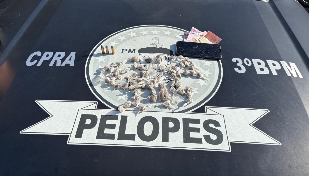 Em Arapiraca, um indivíduo de 18 anos foi preso por tráfico no bairro Nova Esperança. O Pelotão de Operações Policiais Especiais (Pelopes) do 3º BPM apreendeu 72 bombinhas de maconha (45 g); R$ 35,00 e três munições calibre 38 intactas.
