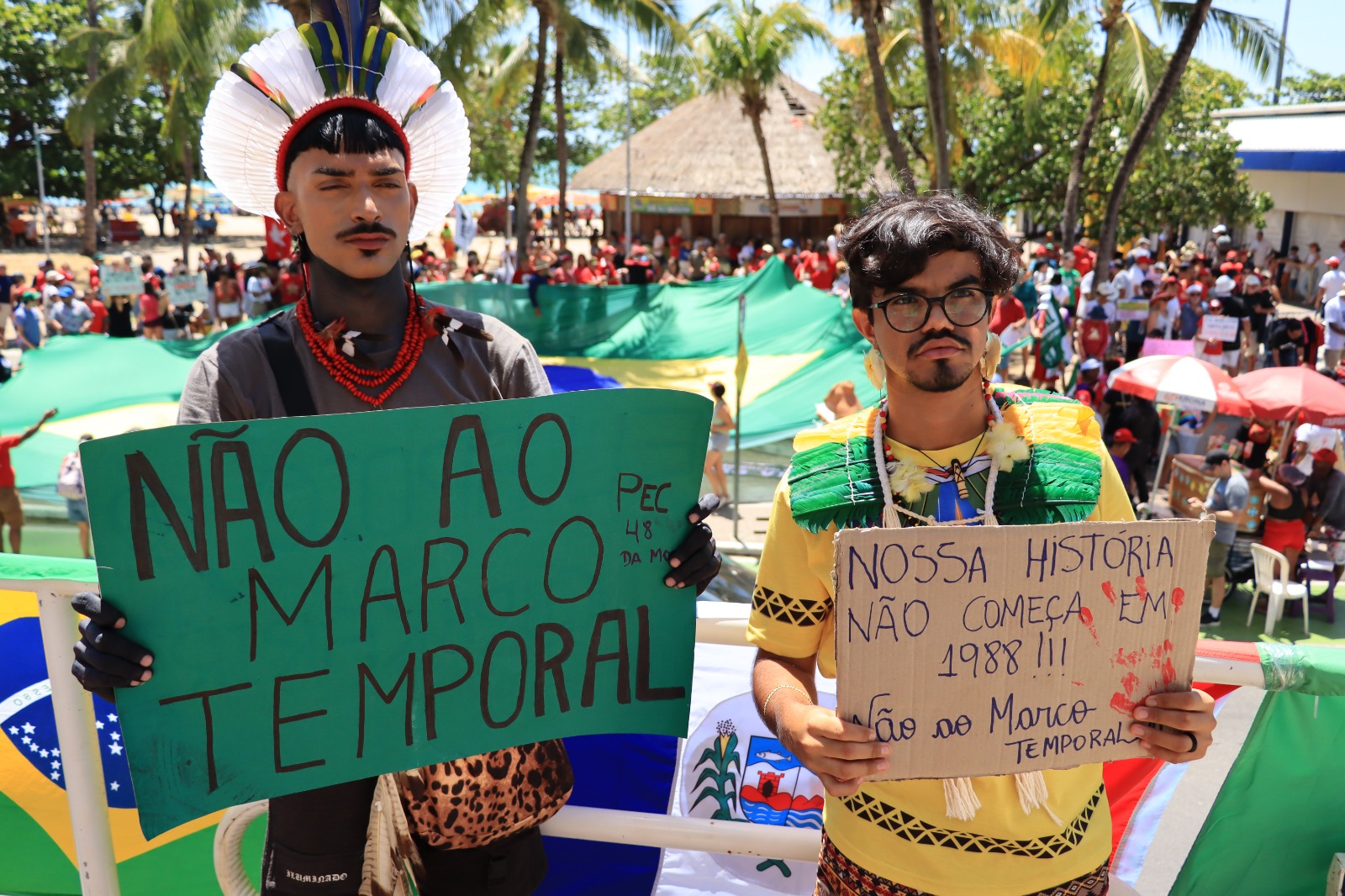 Roniel explicou que a mobilização também tem como foco a luta contra o marco temporal e a defesa da demarcação de terras indígenas. “Dizemos não ao marco temporal, demarcação já. Precisamos reafirmar que nós, povos indígenas, existimos e resistimos muito antes de 1988 e até mesmo antes de 1500, como muitos ainda insistem em ignorar. Estamos aqui marchando e lutando contra a PEC 48 e contra o marco temporal”.