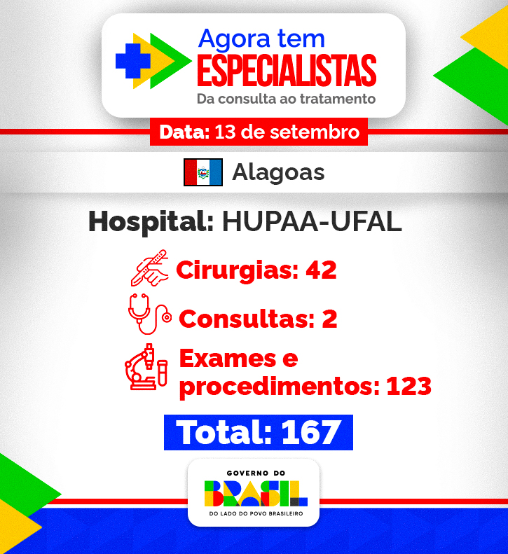 Os atendimentos no estado alagoano foram todos realizados no Hospital Universitário Professor Alberto Antunes, da Universidade Federal de Alagoas (HUPAA-Ufal), onde o mutirão resultou em 42 cirurgias, duas consultas e 123 exames e procedimentos.