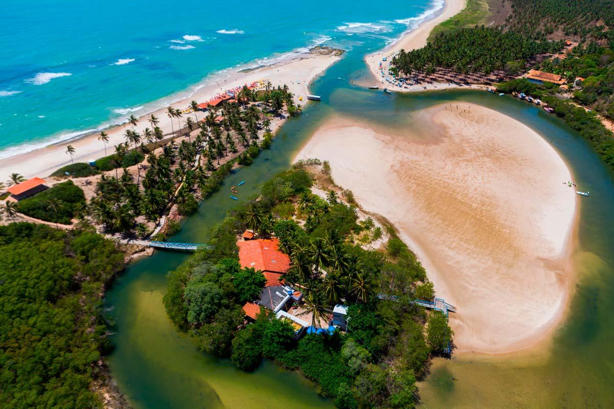 Do outro lado do rio, se encontra a charmosa Pousada Dunas, com lindos quartos voltados para o encontro do rio com o mar.