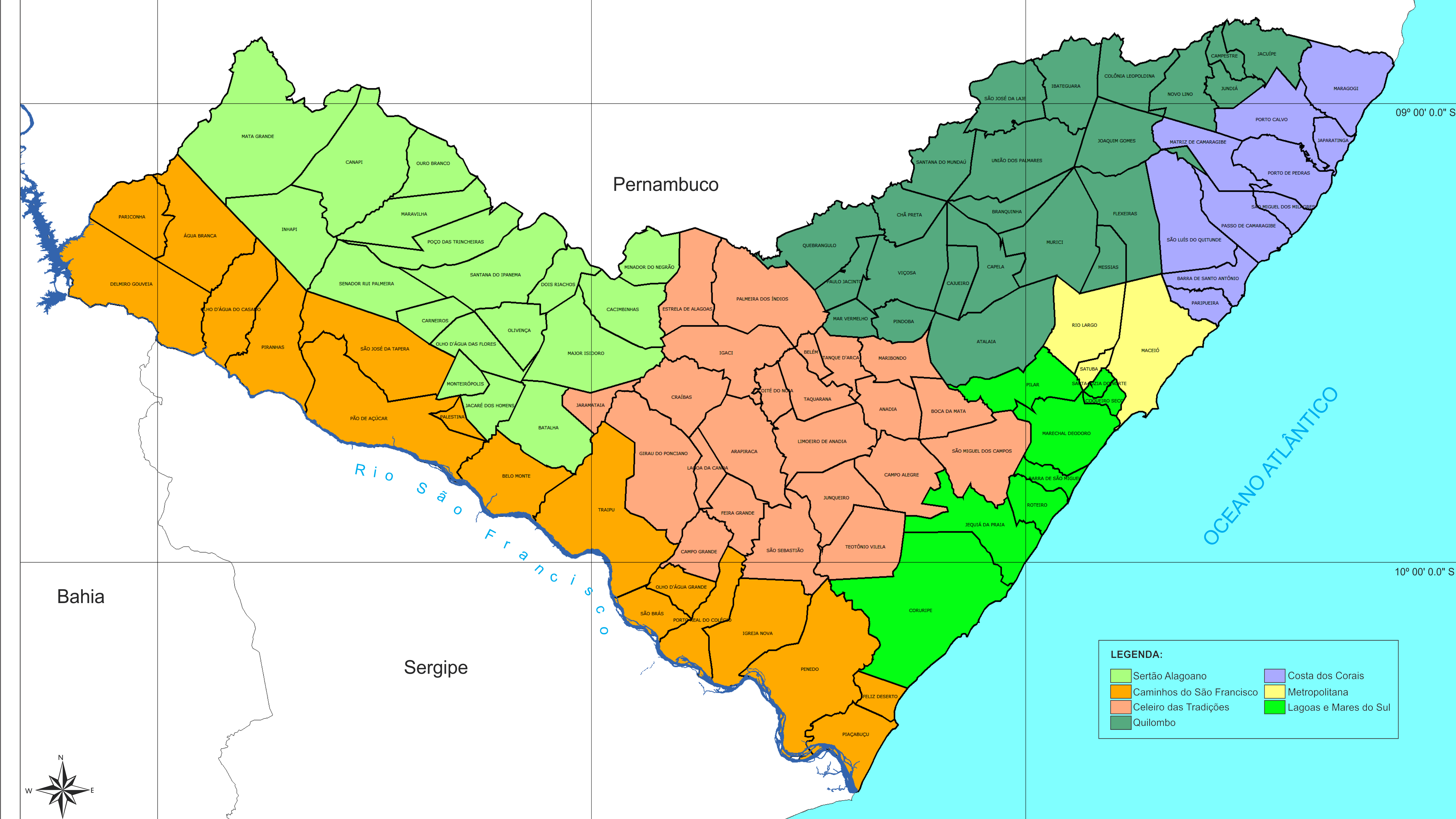 Já na Região da Caatinga o MinTur validou Mata Grande, Maravilha, Olho d'Água das Flores e Santana do Ipanema. Enquanto na Região do Agreste entraram 6 municípios: Boca da Mata, Limoeiro de Anadia, São Sebastião, Teotônio Vilela, Arapiraca e Campo Alegre. Por fim, a Região dos Quilombos, com o maior número de municípios, num total de 11. São eles: Capela, Ibateguara, Atalaia, Maribondo, Chã Preta, Mar Vermelho, Murici, São José da Laje, União dos Palmares, Viçosa e Tanque d'Arca.